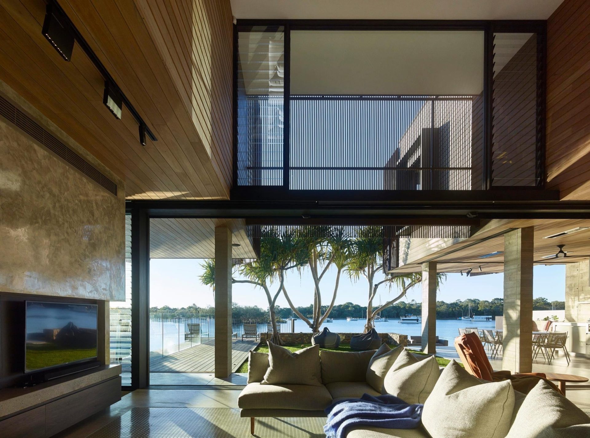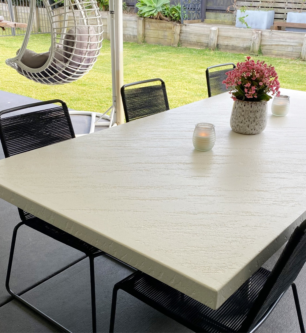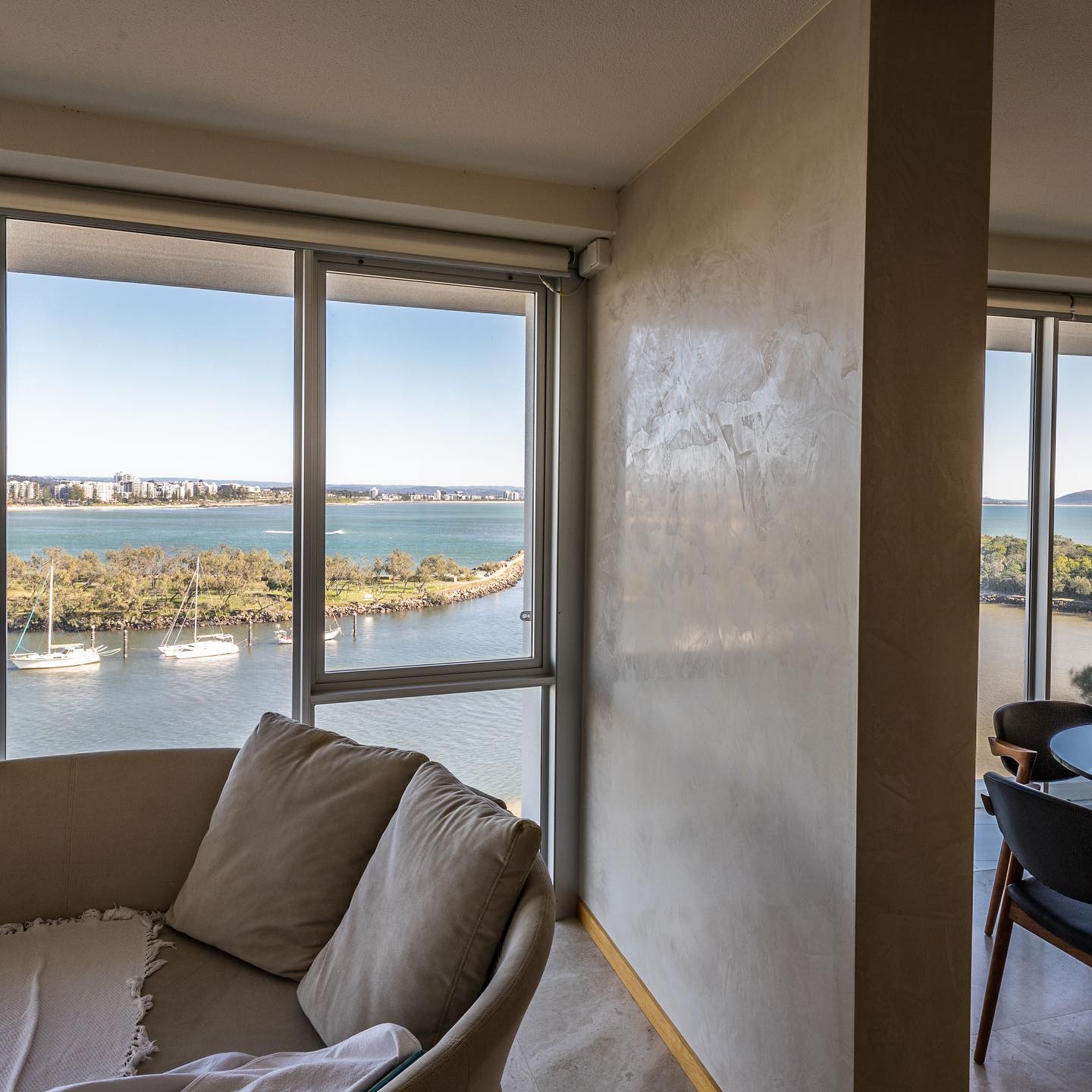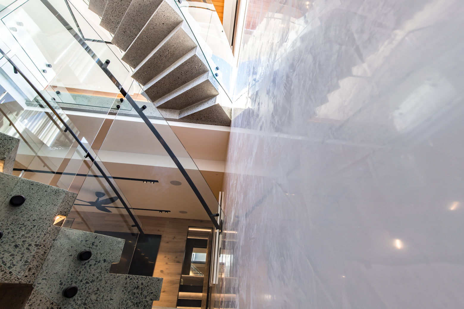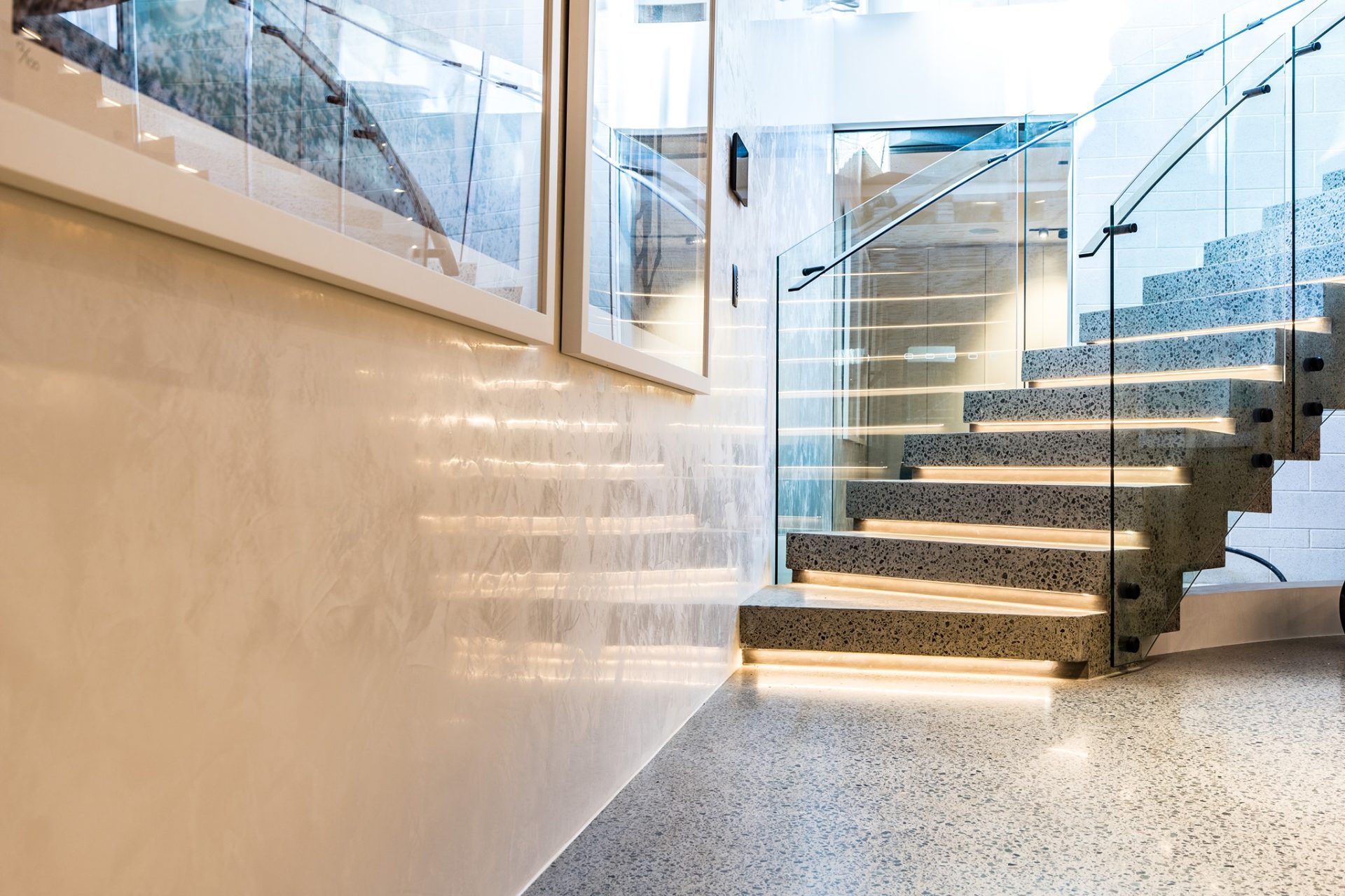 Tadelakt feature wall in dark grey, rough finish with water based polyurethane sealer.
