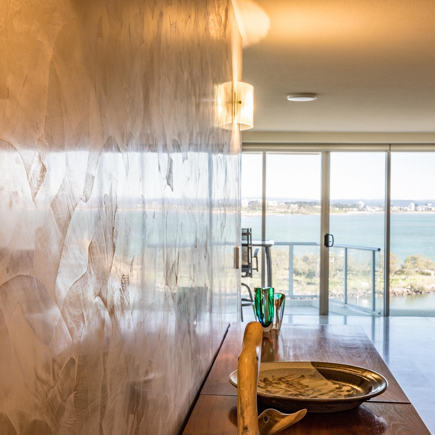 Black Venetian Plaster marmorino polished stucco, wax finish