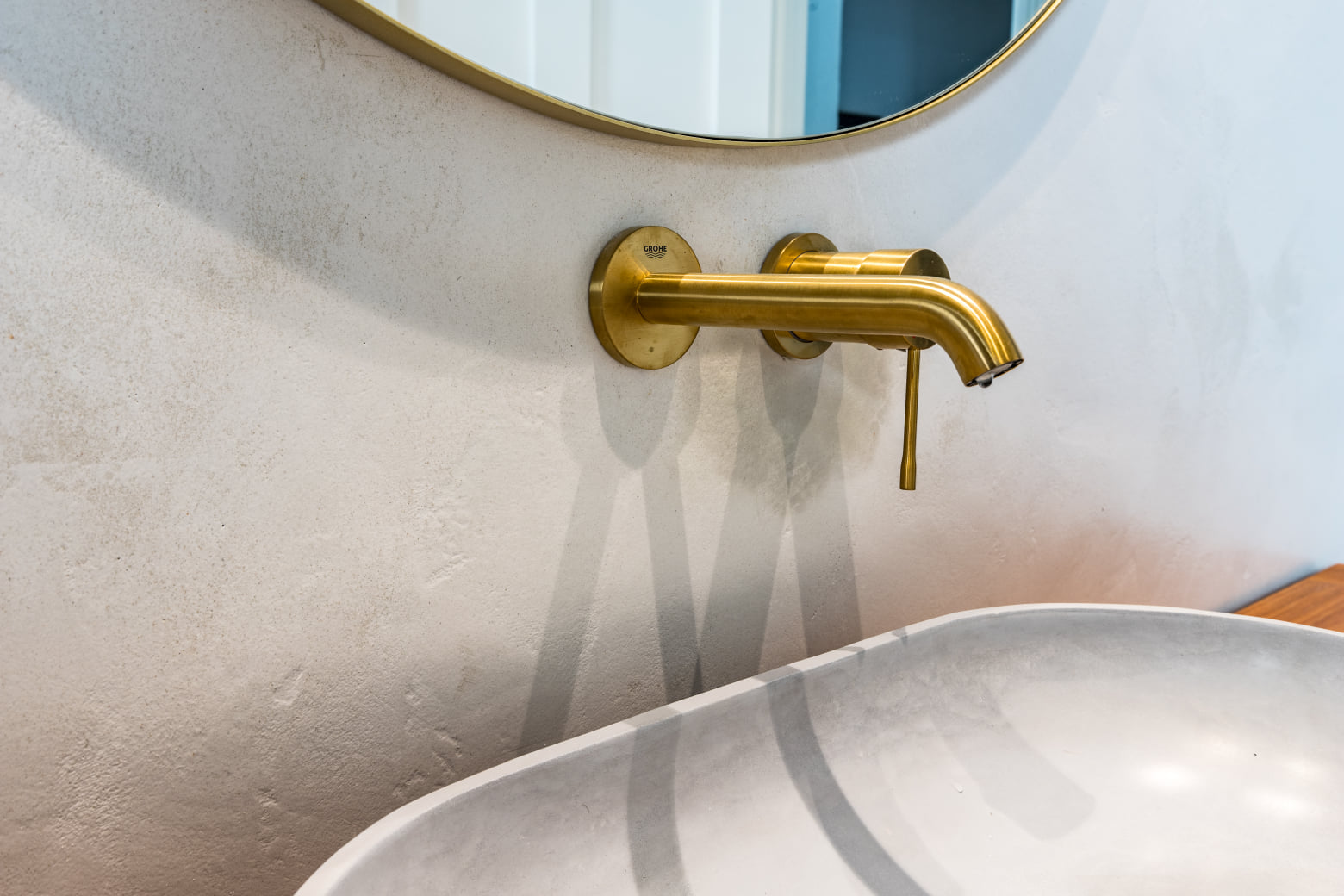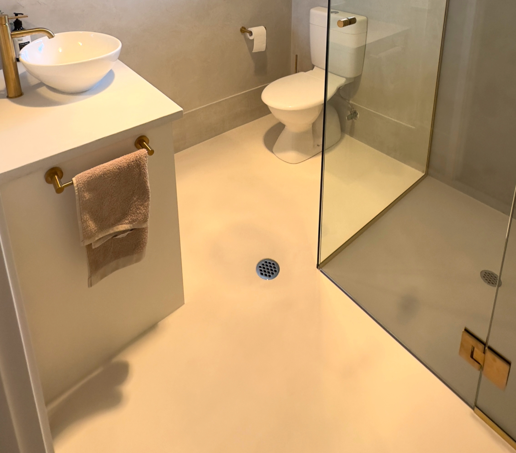 Tadelakt on bathroom walls and shower with polyurethane sealer